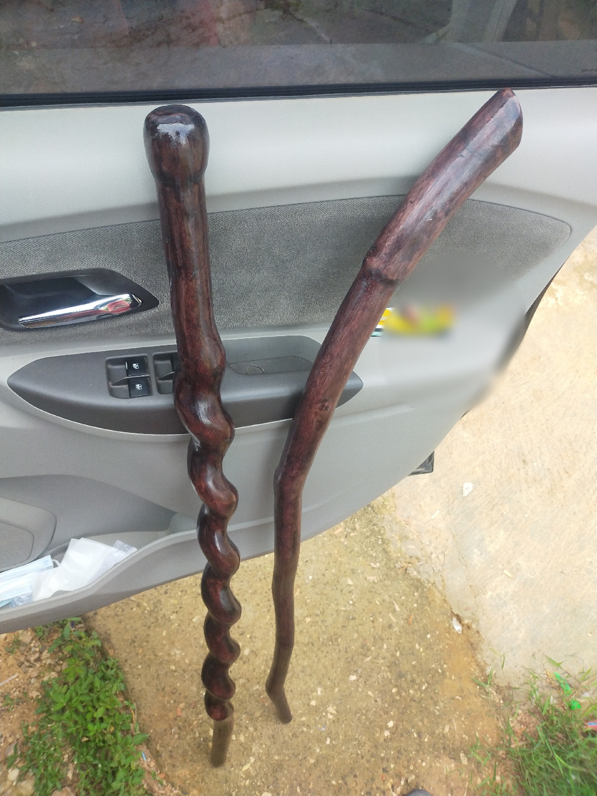 Proses pembuatan tongkat juga meliputi pembentukan yang dilakukan dengan hati-hati. Area pegangan di bagian atas harus dibentuk sedikit bengkok untuk menambah kenyamanan saat digenggam pada bodel tipe tongkat pertama, sedangkan model ke dua dibentuk dengan model spiral. Kami menggunakan mesin gerinda untuk merapikan diameter tongkat hingga mencapai ukuran dua sentimeter, agar nyaman saat digunakan. Setelah itu, amplas digunakan untuk menghaluskan permukaannya, sebelum dilapisi cat dan pernis.